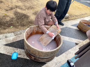 6つのグループ(洗濯板の洗濯体験・通船堀・炭火アイロン体験・石臼、薬研体験・竿秤体験・1,2階の館内見学)に分かれて活動しました。