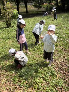 子どもたちは自分の目や耳、手を使って、生き物や自然の変化を実際に確かめながら学びを深めていました。