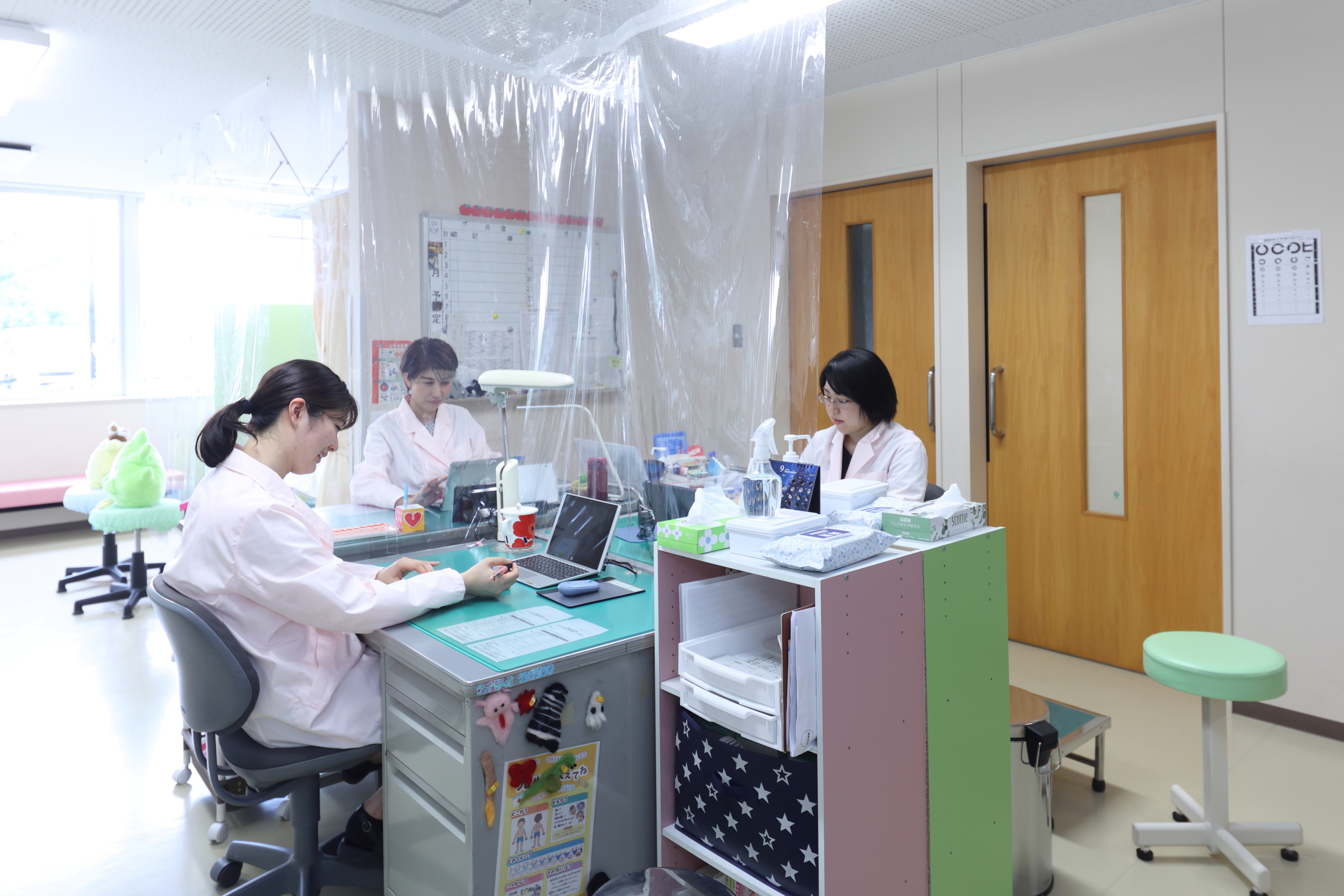 常時、養護教諭3人態勢で、児童の怪我や体調不良の際に速やかなに適切な対処ができるように備えています。また、校内の衛生管理、感染症対策にも細心の注意を払っています。